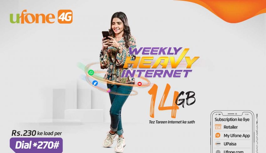 Pakistani telecom operator, Ufone has introduced a new‘Weekly Heavy Internet’ package to fulfill the growing data needs of its customers. The company is now offering a generous 14GB data, powered by its thrilling 4G speeds to deliver a matchless user experience round the clock.