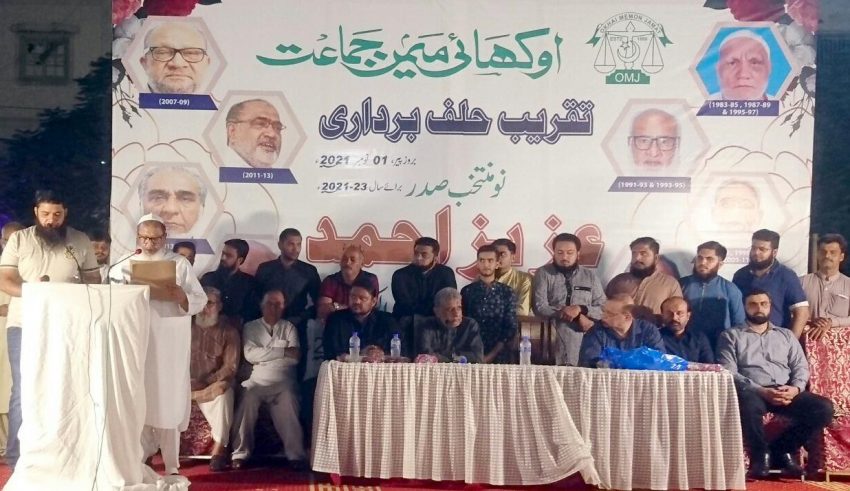 KARACHI/DUBAI: Oath Taking Ceremony of newly elected President for 2021-23 of The Okhai Memon Jamat “Aziz Ahmed Kath” took place on 1st November 2021 at Husainabad Family Park.