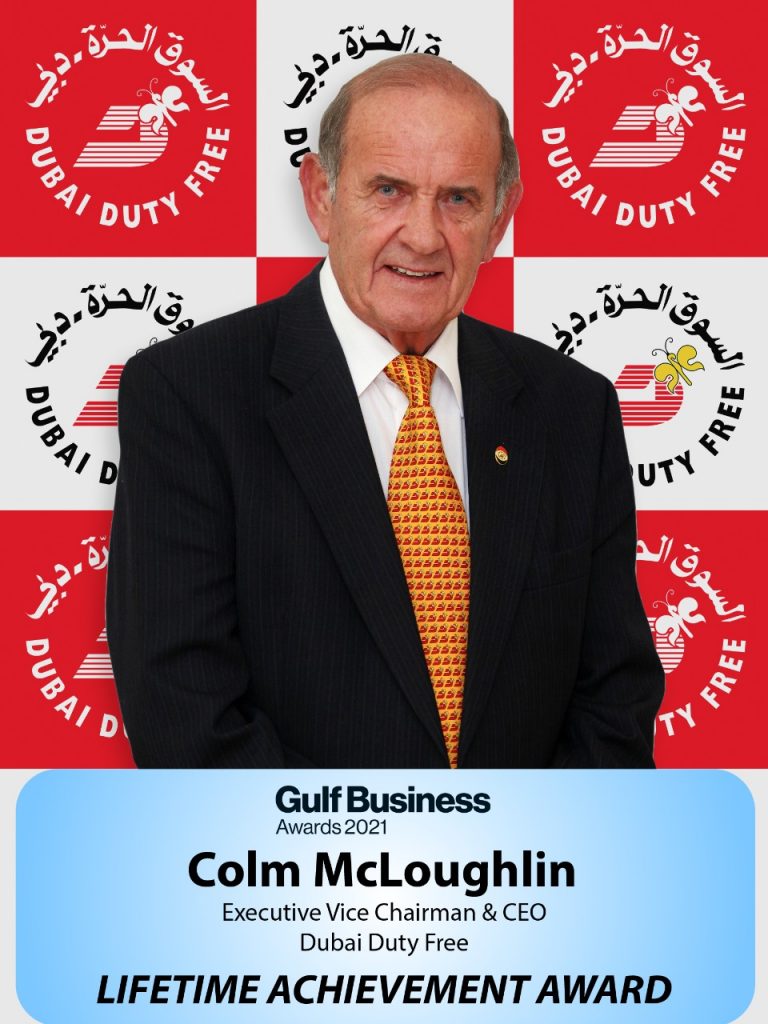 Dubai Duty Free Executive Vice Chairman & CEO, Colm McLoughlin was honoured with the coveted Lifetime Achievement Award at the 2021 edition of Gulf Business Awards held on 23rd November at the Central Park Towers in Dubai International Financial Centre (DIFC).