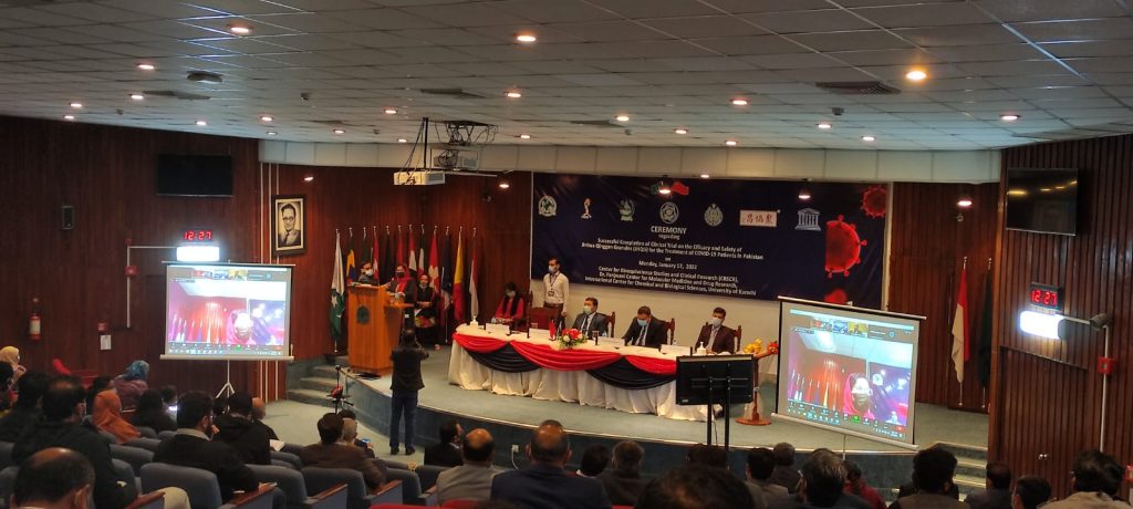 She was speaking in the public announcement ceremony of the first-ever successful clinical trial of Chinese medicine ‘Jinhua Qinggan Granules’ (JHQG) held on Monday at the International Center for Chemical and Biological Sciences (ICCBS), University of Karachi. The ceremony was jointly organized by the Sindh Health & Population Welfare Department, COMSTECH, ICCBS – University of Karachi, and many Chinese institutions.