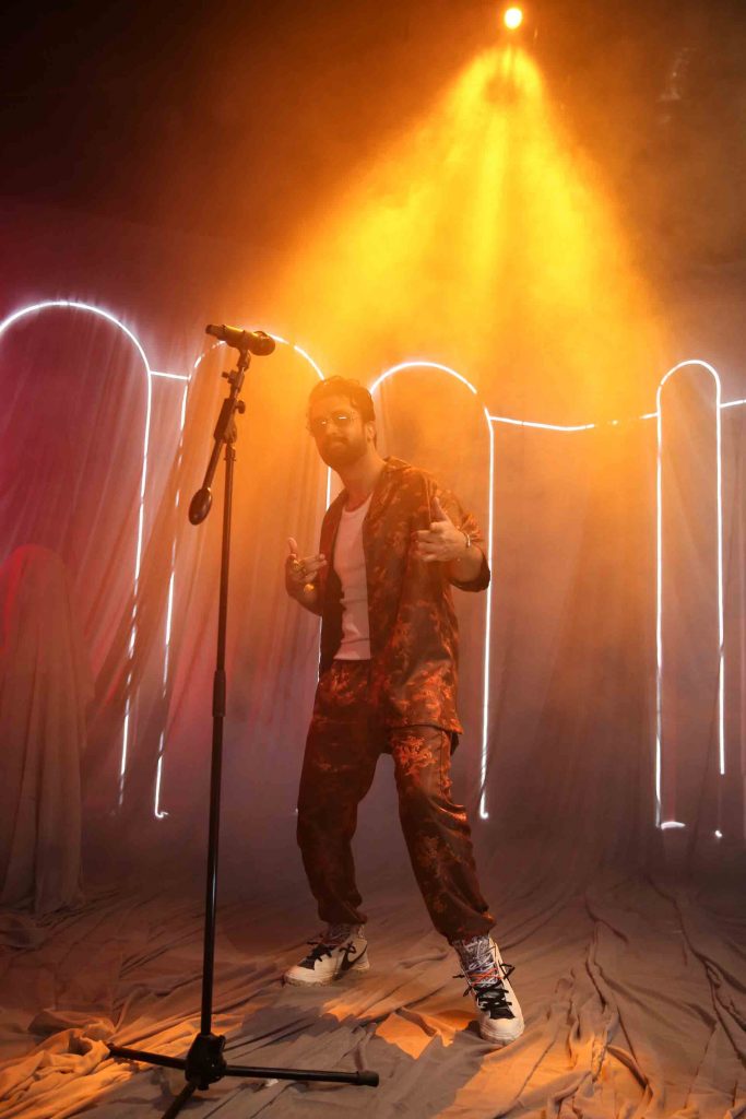 There’s no mistaking that these characters are megastars from Faraz Sheikh and Alishay Adnan’s styling. Momina’s look is pulled together and in control, Atif’s co-ords send the best kind of chaotic energy. Video Director Kamal Khan plays up the chill between them, setting the two under cold-toned lights in minimal surroundings, with the duo singing to each other but never meeting.