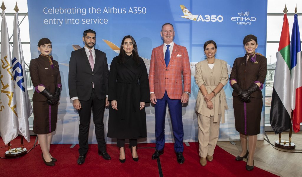 Etihad Airways today unveiled its new Airbus A350-1000, registration A6-XWB, on a special inaugural commercial flight from Abu Dhabi to Paris. The aircraft is the first A350 to be operated by a UAE airline, and the first of five A350s set to join Etihad’s fleet over the coming months.