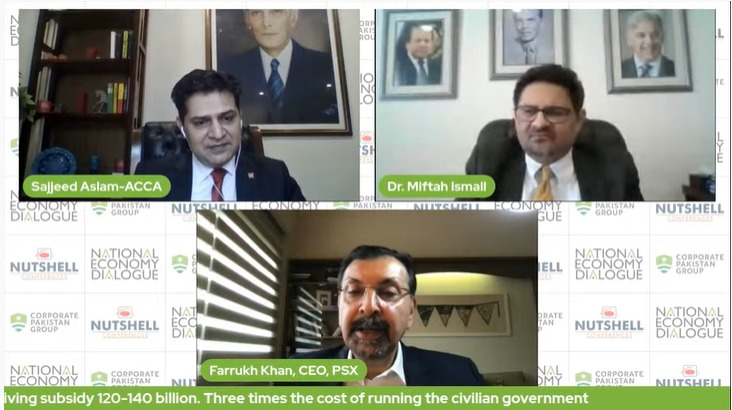 Dr. Miftah Ismail, Finance Minister, and Shaukat Tarin, former Finance Minister, agreed on forming a Charter of Economy among the political parties while putting aside political differences for sustainable economic growth on a long-term basis. Speaking as chief guest at the webinar on National Dialogue on Economy: The Way Forward for Pakistan, organized by Nutshell Conferences and Corporate Pakistan Group, on Saturday, Miftah Ismail said Prime Minister Shahbaz Sharif is ready to sign the Charter of Economy on a minimum agenda despite different ideologies of various political parties. He said the growth in the economy is achievable in Pakistan with its huge size of the population but the sustainable economic growth has been a challenge over the period last years, which needs to be addressed mutually by everyone in the government and the private sector. Consistency is the key to economic policy and the present government should honor the commitment made by the previous government as part of the sovereign guarantees of the country and international laws.