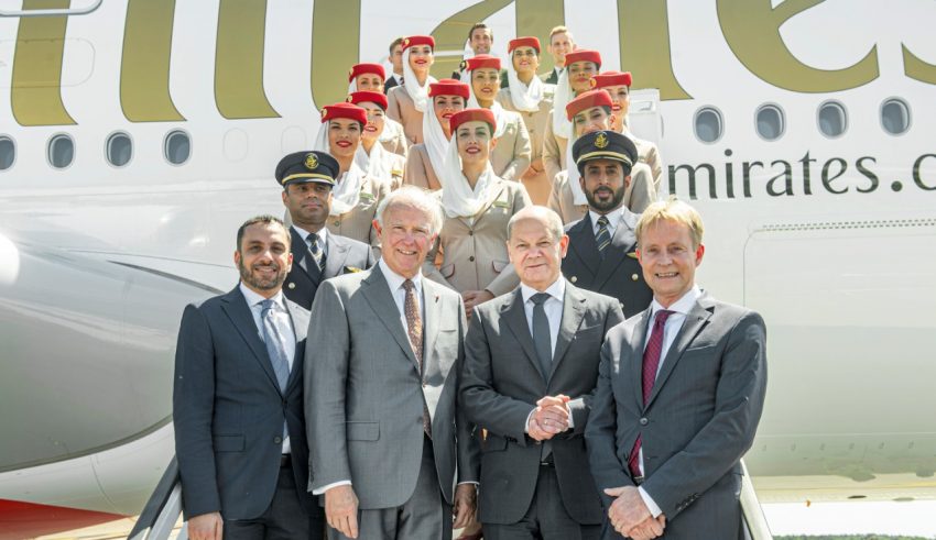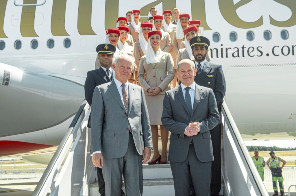 Olaf Scholz, Chancellor of the Federal Republic of Germany, visited today the latest Emirates A380 as part of the official opening tour of ILA Berlin 2022. He was welcomed by Sir Tim Clark, President Emirates Airline and Adnan Kazim, Chief Operating Officer Emirates Airline as well as Volker Greiner, Emirates Vice President North & Central Europe. Scholz was accompanied by a high-profile delegation, including Volker Wissing, Federal Minister of Digital Affairs and Transport, Dietmar Woidke, Prime Minister of the State of Brandenburg, Franziska Giffey, Governing Mayor of the State of Berlin, and Aletta von Massenbach, CEO of Berlin Brandenburg Airport.