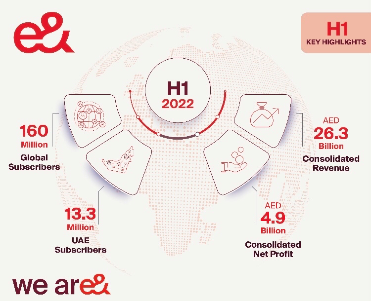 ABU DHABI: e& (formerly known as Etisalat Group) today announced its financial results for H1 2022.