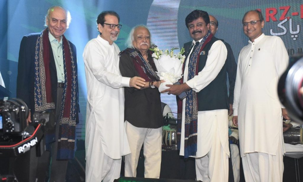 Arts Council of Pakistan Karachi and Culture Department of Sindh Jointly organized A colorful event “Arz-e-Pak” in Ahmed Shah Building Studio One on the occasion of Independence Day. Provincial minister for labour and Manpower Saeed Ghani, writer and intellectual Anwar Maqsood, President of Arts Council Muhammad Ahmad Shah, Provincial minister for education & culture Sardar Ali Shah Parliamentary Secretary Qasim Soomro and Ejaz Farooqui, besides a large number of participants participated, various artists gave wonderful performances and songs dedicated to the love of the country.