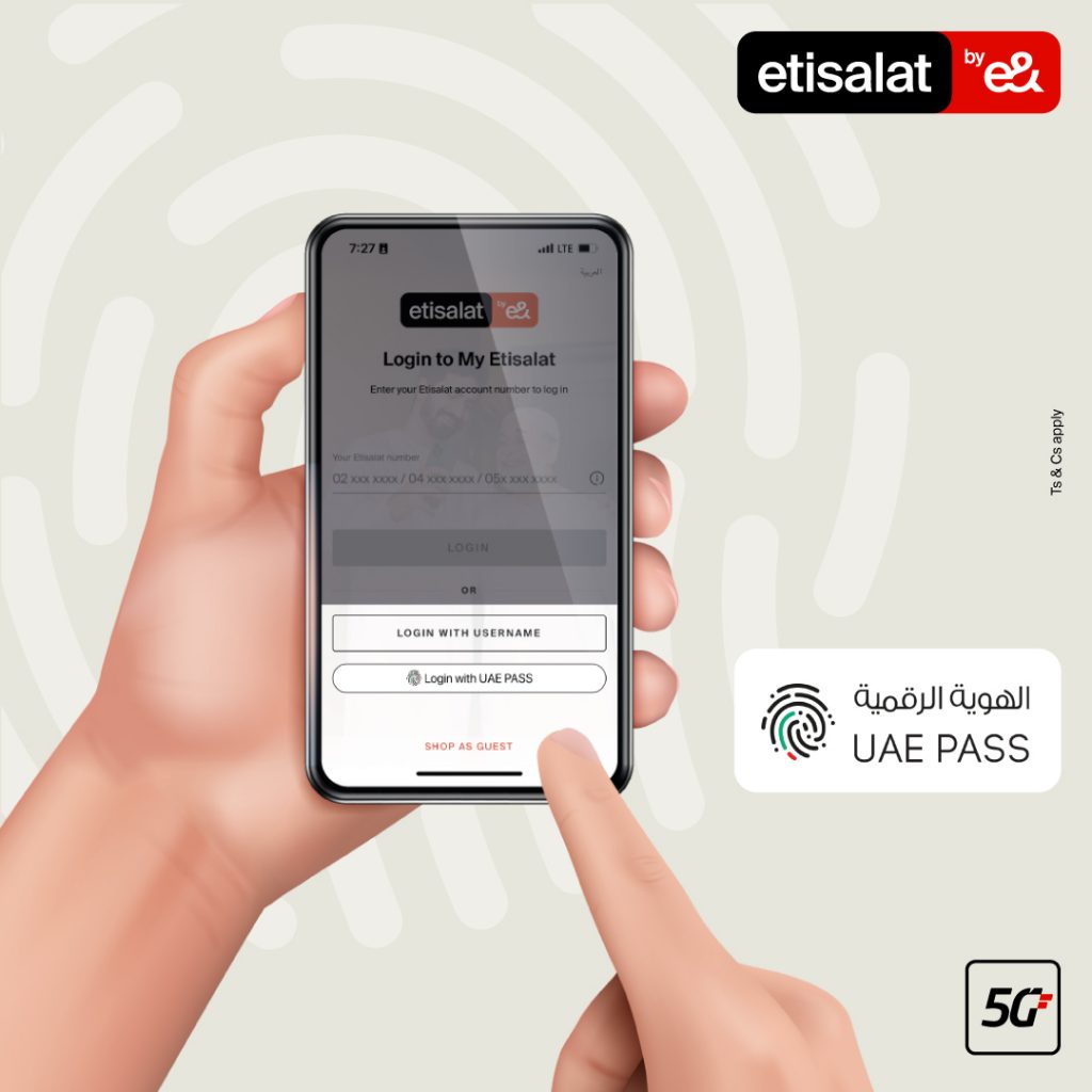 Etisalat UAE, branded as etisalat by e&, today announced the integration of the UAE PASS login on the ‘My Etisalat UAE’ app and portal (www.etisalat.ae), enabling all subscribers to seamlessly log in with their secure national digital identity details.