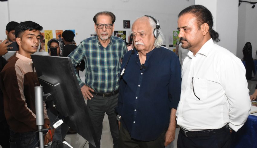 Well-known writer and intellectual Anwar Maqsood expressed his opinion and said that I was very worried because of the flood. Today, seeing the work of these students has reduced my anxiety. these students get jobs when they leave, no one is unemployed, students are happy and satisfied with their studies, art school Principal Shahid Rasam said that this is a joint project of Indus Valley and Iqra University named “Khoj”. I am very proud that our students have done a wonderful job., he said that today is very important for students because our special guest is Anwar Maqsood, Anwar Maqsood had autographed a picture of me in the eighties, after that my luck shines many stories are being heard and seen after seeing the work of all of you, he said, President of Arts Council Muhammad Ahmed Shah is a blessing for us., all the facilities are provided to the students in this institution.