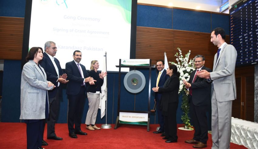 In a landmark development for the capital market, Pakistan Stock Exchange (PSX) signed an Agreement with Karandaaz whereby Technical Assistance (TA) grants would be given to prospective companies to be listed on the GEM Board. The Agreement was signed by Mr. Farrukh H Khan, MD & CEO PSX, and Mr. Waqas ul Hasan, CEO Karandaaz Pakistan (KRN), at a gong ceremony held at the Exchange.