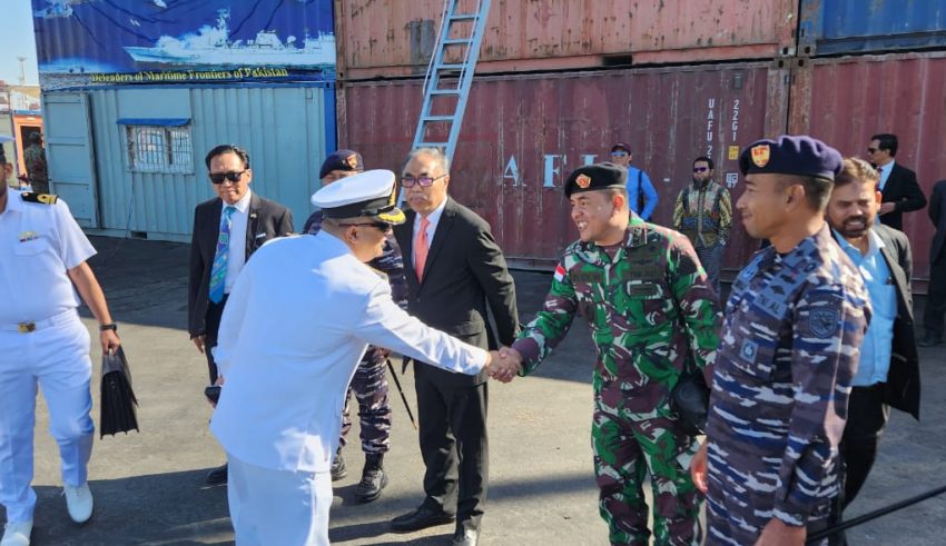 KRI REM 331 was welcomed by Indonesian Ambassador to Pakistan H.E. Adam M. Tugio who was accompanied by Indonesian Consul General Dr. June Kuncoro Hadiningrat, Indonesian First Admiral Teguh Prasetyo, and Indonesian Navy Col. Sumarji Bimoaji.