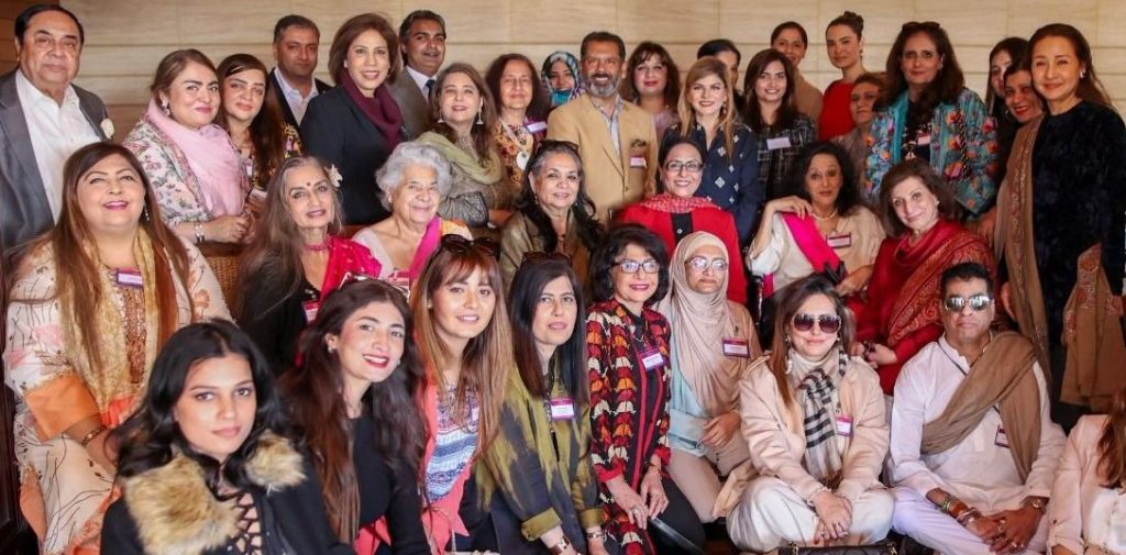 This dynamic must-attend networking session featured 40 incredible women leaders – including Sultana Siddiqui (founder, Hum), Zeenat S. Ahmed (founder, Taneez), Zeba Bakhtiar (actress), Sheema Kermani (classical Dancer), Noorjehan Bilgrami (owner, Koel), Nadia Hussein Khan (model), Seema Taher Khan (owner, TVOne), Ameena Saiyid OBE (publisher), beauticians Nighat Misbah and Angie Marshall, audit firm partners Moneeza Butt & Hena Sadiq, Alycia Dias (singer), Huma Khalid (IFC), and Dr. Ishrat Lindblad (Professor-English Literature (Retd), et al. – as well as some extraordinary men who support women including sculptor Amin Gulgee, Sitara-e-Imtiaz Shujat Ali Baig, winner of Badin local elections Pir Muhammad Saleh and Ahsan Mehanti.