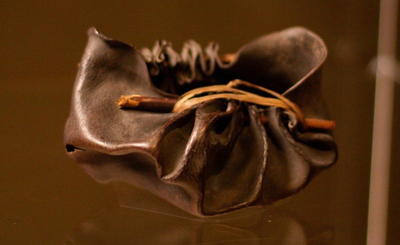 The rikawa was made in the late 18th century from bull kelp, wooden skewers and plant fibre ties. These vessels were used by Palawa people to hold and carry water, a life-sustaining resource. This item was collected from near Recherche Bay in 1792 by the expedition party of Bruni d’Entrecasteaux. Records of its existence in a private collection date to the 1820s when it was illustrated in a catalogue. After that it entered the French public collections, was displayed in the Louvre and then progressively mislabelled over the years, incorrectly describing its materials and country of origin, before ending up misplaced in various museum collections in Paris.