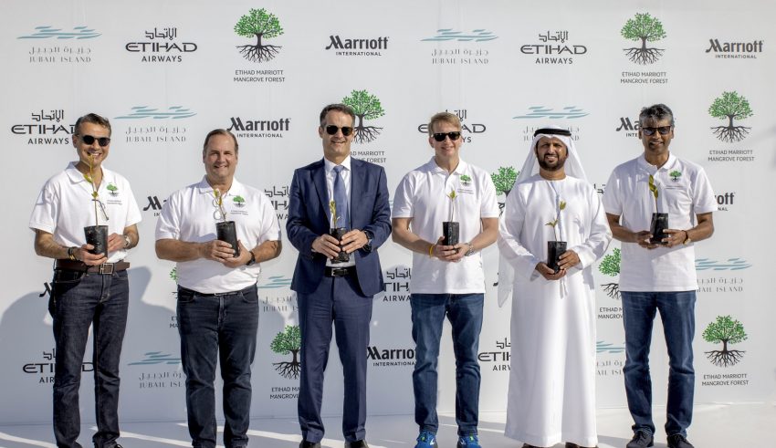 Etihad Airways and Marriott International celebrated the planting of 12,000 mangrove trees to complete the Etihad Marriott Mangrove Forest in Jubail Island. Spread across more than 150 square kilometers of the UAE’s coastline, the Etihad Marriott Mangrove Forest now makes up part of the only evergreen forest in the GCC region providing a natural habitat for marine and terrestrial species.