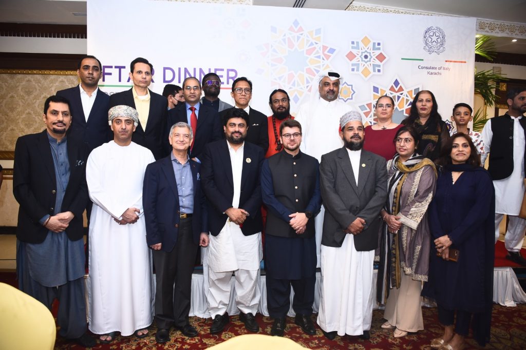 The Consul General of Italy in Karachi, Mr. Danilo Giurdanella hosted the second edition of Iftar dinner in Karachi. The event was organized for the Muslims and non-Muslims residing in Karachi including government officials, diplomatic community, religious clerics and local dignitaries to commemorate the holy month of Ramadan and promote inter-faith harmony. Honorable Chief Minister Sindh Mr. Murad Ali Shah and Honorable Governor Sindh, Mr. Kamran Tessori attended the Iftar dinner. Other dignitaries present were; Hon.Dr. Azra Pechuho, Sindh Minister for Health, Hon. Mr. Imtiaz Ahmed Shaikh, Sindh Minister for Energy and Rear Admiral Salman Ilyas, MD Karachi Shipyard and Engineering Works.