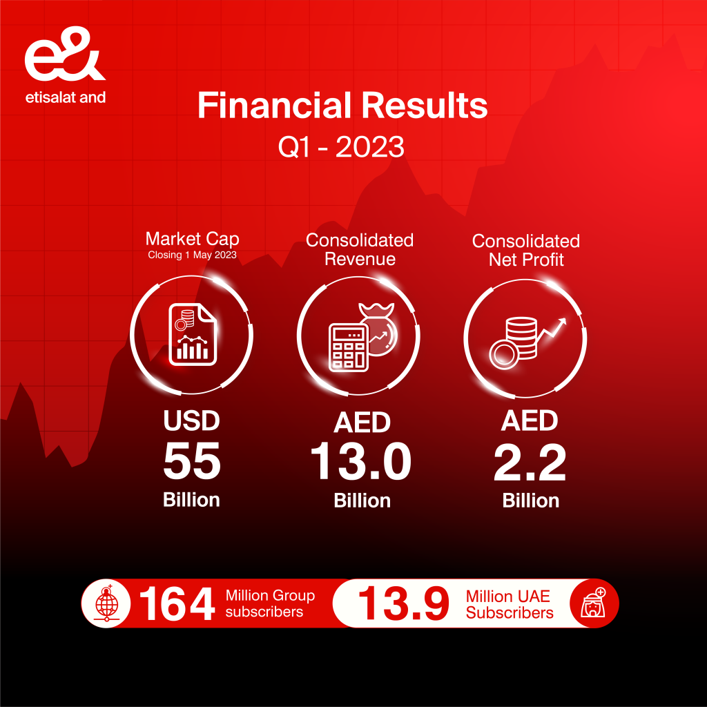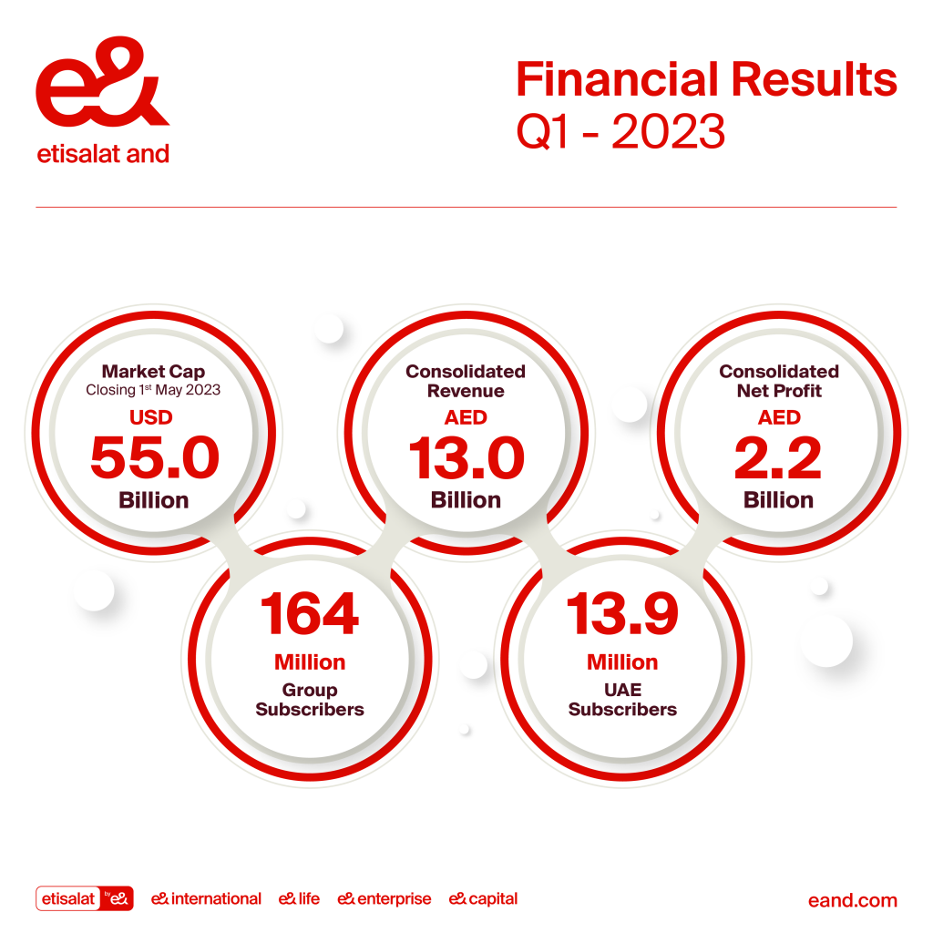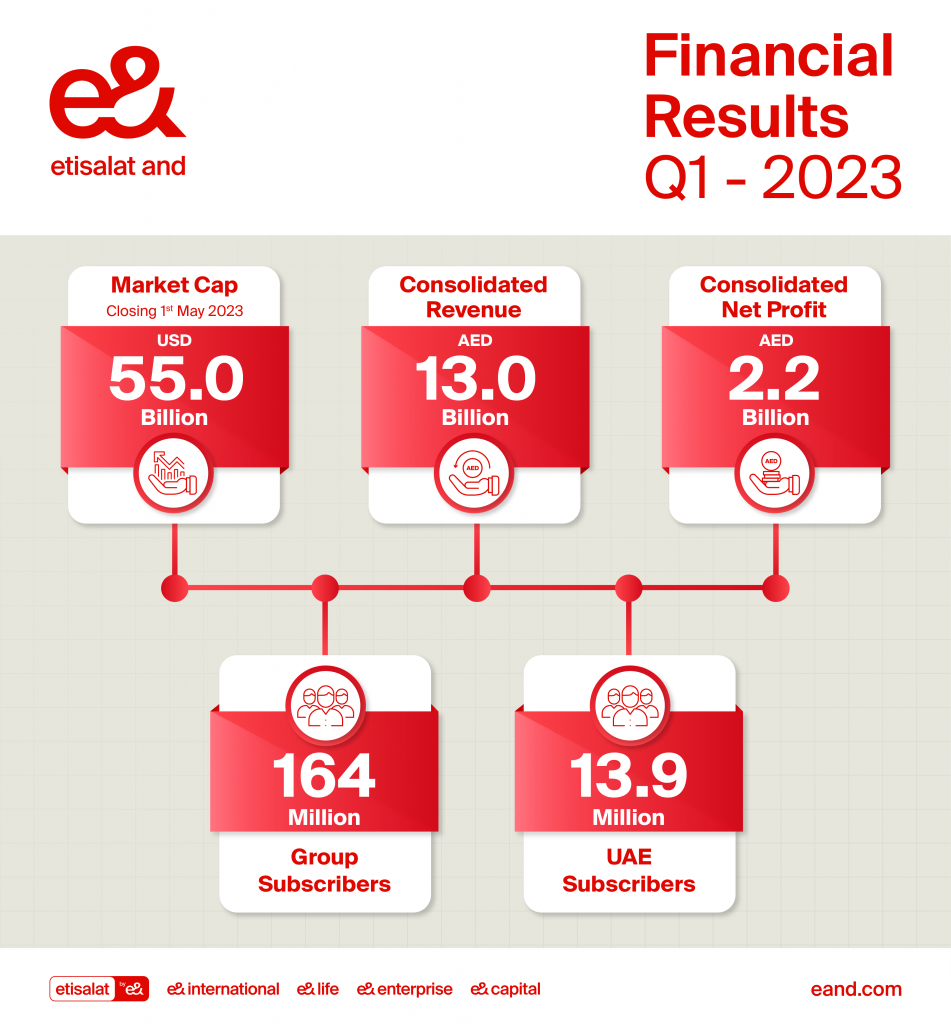 e& reports consolidated revenue of AED 13.0 billion in Q1 2023