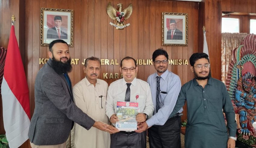 KARACHi: Mr. Muhammad Umair Khan, CE of Universal Exporters, Director Mr. M. Noman Khan & Mr. Daniyal Mirza, CE of Daniyal Enterprise Members Companies of Pakistan Plastic Manufacturing Association, met with Mr. Ahmad Sofiyan, Ph.D, Honorable Consul for Economic Affairs (Minister Counsellor) of Indonesia, discussed Bilateral Trade and presented PAKPLAS Magazine.