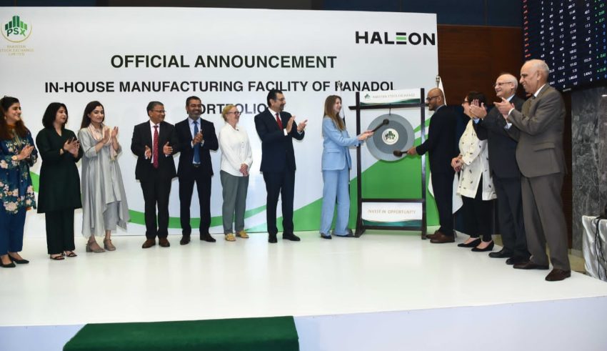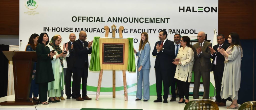 KARACHI: Pakistan Stock Exchange (PSX) held a gong ceremony to the announce the building of an in-house manufacuring facility for Panadol portfolio by Haleon Pakistan Limited, a world-leading Consumer Healthcare Company and a listed company on Pakistan Stock Exchange. The gong ceremony was attended by the British High Commissioner to Pakistan, Jane Marriott, as the Chief Guest at the occasion.