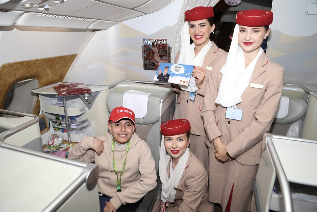 Humza Dabab recently flew from Melbourne to Dubai with his mother and two siblings and was treated to a VIP experience from Emirates – his favourite airline. This was his first flight with Emirates, though his parents advised he is already very familiar with all facets of Emirates through his own studies – from the aircraft itself, to the inflight entertainment ice, the cabin crew uniform and the safety video. Humza bought his own safety belt to simulate and act out the safety advisory, to which he has memorised all the words, and has a collection of Emirates aircraft models to practice the take-off and landing experience. Humza’s mother Lamees said ‘The plane is Humza’s happy place. The destination is not even the most exciting part of the journey, I can wholeheartedly say it is the plane ride itself. He is so excited to be finally travelling with Emirates.’