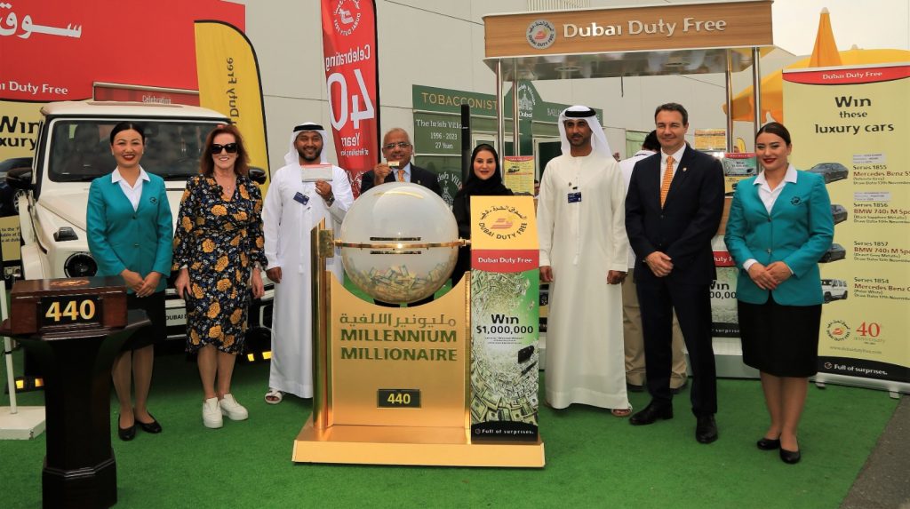 Today’s Millennium Millionaire draw was conducted by Dubai Duty Free’s Chief Operating Officer, Ramesh Cidambi, Sinead El Sibai, SVP – Marketing, Mona Al Ali, SVP – HR, Michael Schmidt, SVP – Retail, Zayed Al Shebli, SVP – Loss Prevention and Corporate Security and Yousef Al Khalid, VP – HR Service Delivery.