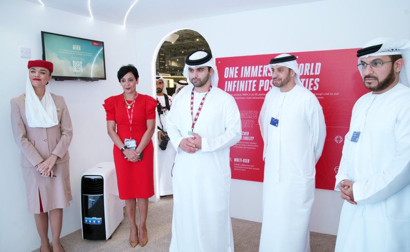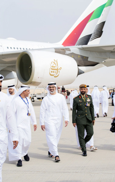 DUBAI: His Highness Sheikh Khaled bin Mohamed bin Zayed Al Nahyan, Crown Prince of Abu Dhabi and the Chairman of Abu Dhabi Executive Council, visited Emirates’ four-class A380 aircraft static display at the 2023 Dubai Airshow, touring the airline’s fully refreshed First, Business and Economy Class cabins, as well as Emirates’ latest Premium Economy cabin. His Highness Sheikh Mansoor bin Mohammed bin Rashid Al Maktoum, Chairman of Dubai Sports Council also visited Emirates’ exhibition stand and was welcomed by Adnan Kazim, Emirates’ Chief Commercial Officer and Sheikh Majid Al Mualla, Emirates’ Divisional Senior Vice President, International Affairs.