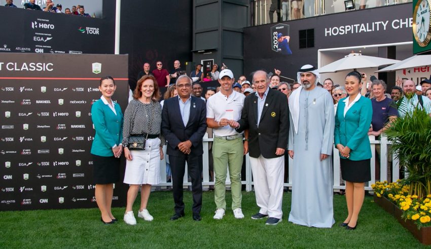 Rory was accompanied by Dubai Duty Free’s Executive Vice Chairman & CEO, Colm McLoughlin, Chief Operating Officer, Ramesh Cidambi, Salah Tahlak, Joint COO and Sinead El Sibai, Senior Vice President – Marketing.
