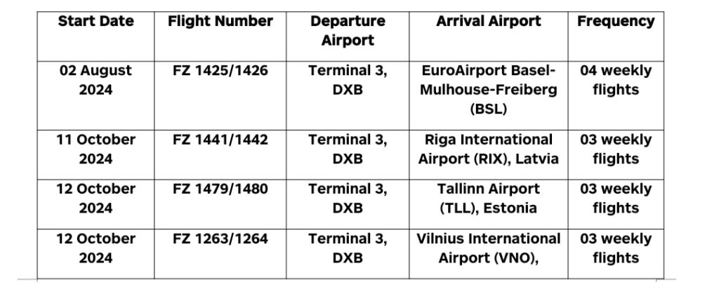 flydubai becomes the first UAE national carrier to operate direct flights to EuroAirport Basel-Mulhouse-Freiburg (BSL) from 02 August 2024. The announcement also marks the carrier’s first entry into the Baltic region with direct flights to Riga International Airport (RIX) in Latvia commencing on 11 October as well as Tallinn Airport (TLL) in Estonia and Vilnius International Airport (VNO) in Lithuania from 12 October 2024.