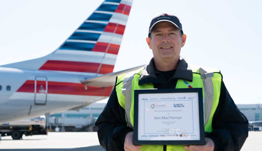 SAN DIEGO: American Airlines aviation maintenance technician (AMT) Ken MacTiernan was honored with the Airlines for America (A4A) Nuts and Bolts award, marking the first time an AMT has received the award while actively working in the profession since the award launched in 1967.