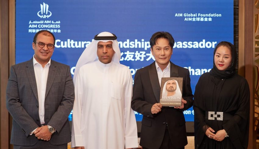 During the award ceremony, Mariam Gao, the China Country Director of AIM Congress, presented Jeff Chang with the book “My Vision,” authored by the UAE Prime Minister, Vice President, and the Ruler of Dubai H.H. Sheikh Mohammed Bin Rashid Al Maktoum. This book aims to provide Mr. Jeff with insights into Arab leadership and country development.