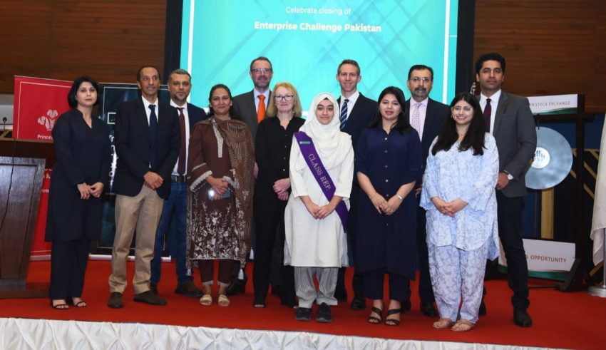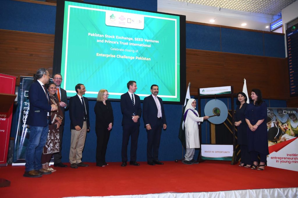 A gong ceremony was held at Pakistan Stock Exchange to celebrate closing of Enterprise Challenge Pakistan (ECP), a business competition for school children in Pakistan. The ceremony was also part of the effort to raise awareness on entrepreneurship amongst the youth of the country through ECP – an initiative of Prince’s Trust International and SEED Ventures. Enterprise Challenge Pakistan is a competition meant to give students a better understanding of business models through a business simulation game, one-on-one mentorship, coaching and peer support networking. Prince’s Trust is a UK based Trust founded in 2015 by His Majesty King Charles III to address the global issue of youth unemployment. SEED Ventures is Pakistan based partner of Prince’s Trust under the aegis of which Enterprise Challenge Pakistan was conducted. SEED Ventures employs ICIS approach to foster inclusive economic prosperity through ecosystem development and impact investments.