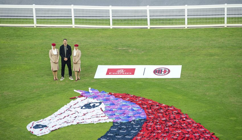 Uniquely created for the event by calligraffiti artist and designer artist Abdul Kareem, known as Kareemgraphy, the innovative art installation is a representation of a horse, made up of 187 AC Milan’s Home, Away, Third, and goalkeeper jerseys, artfully arranged. The eye-catching 8 x 8 metre display sits on the lawn area adjacent to the parade ring, and comes to life when viewed by Dubai World Cup fans in the Grandstand, in a breathtaking vision uniting sports, culture, and art.