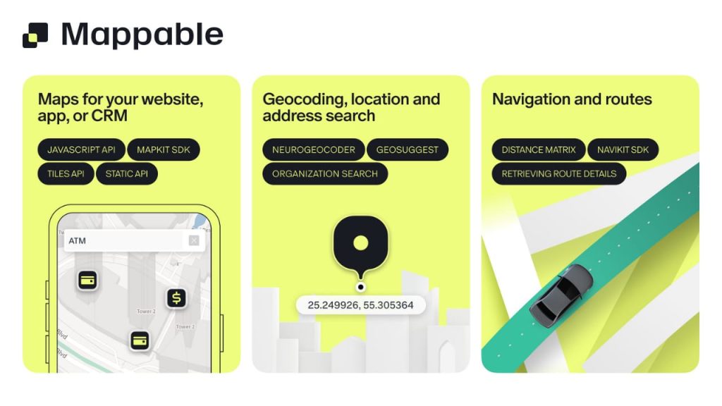 In addition to the Neurogeocoder API, Mappable offers a comprehensive suite of solutions tailored to multiple business needs: