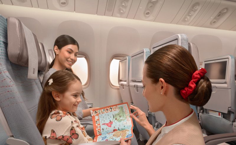 Kids Keepsakes – Kids of all ages are offered a selection of toys and giveaways onboard, made from more sustainable materials with each age group in mind. For example, the Fly with Me magazine is a fun-filled activity magazine featuring puzzles, jokes and activities for 3–8-year-olds. To make memories that last a lifetime, Emirates cabin crew can capture kid’s special moments and journeys onboard with an instant Polaroid camera, which is then presented to the family in a limited-edition Emirates photo frame as a keepsake.