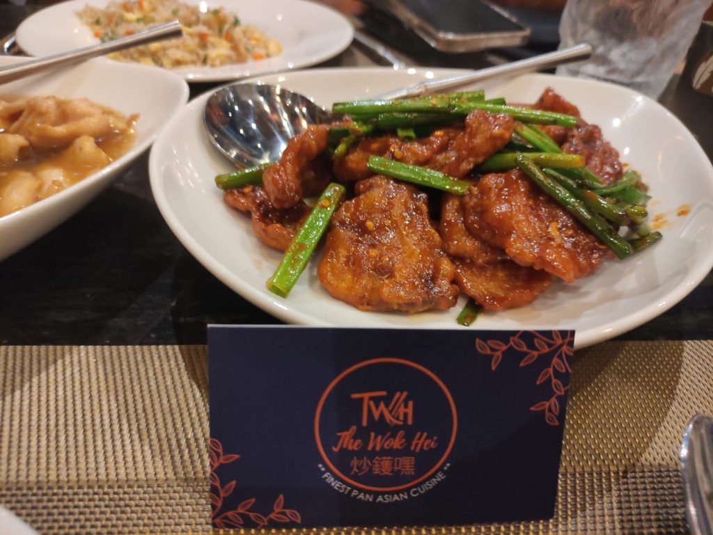 At the end of our discussion we were served with the best of the best Pan Asian Culnary that was available at The Wok Hei. to start off with we were served with The Wok Hei Special Soup with crackers served with chefs signature sauce. Soup felt very nutritious, as it had all the proteins along-side a variety of veggies. For starter Chipotle Shrimps felt like an excellent choice as they were extremely flavorful, hearty and delicious. For our main-course we were served with Shanghai Beef Noodles, Stir Fry Fish Green Chilli along-with Garlic Fried Rice.