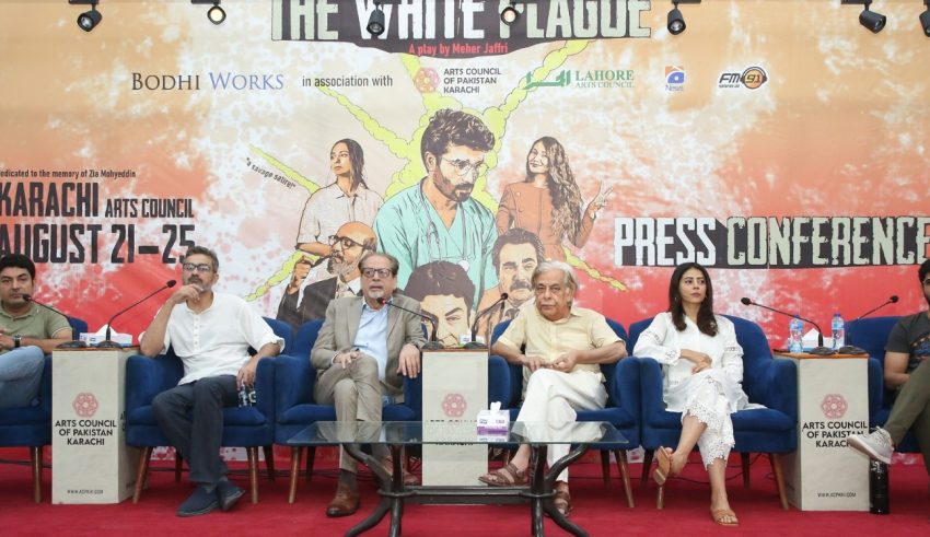 KARACHI: Arts Council of Pakistan Karachi and Bodhi Works (Film and Theater Company) organized a press conference regarding the theatre play “The White Plague,” at Haseena Moin Hall. President Arts Council of Pakistan Karachi Mohammad Ahmed Shah, filmmaker and director Meher Jaffri, Theater Director Khalid Ahmed, actor Fawad Khan, Kashif Hussain, and Saad Zameer, briefed the media about the details of the play.