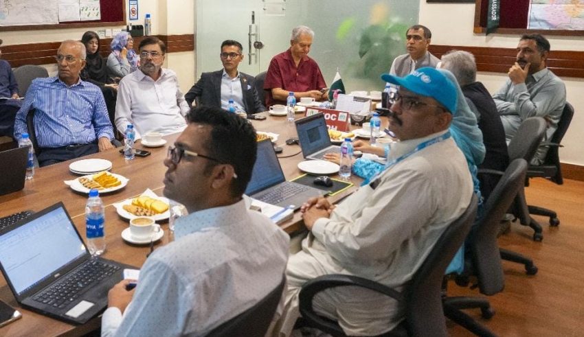 The meeting was chaired by EOC Coordinator Irshad Sodhar, and attended by WHO Team Lead Dr. Asif Ali, UNICEF Team Lead Dr. Shokat Ali, N-STOP Team Lead Dr. Shumaila Rasool, and other EOC officers.
