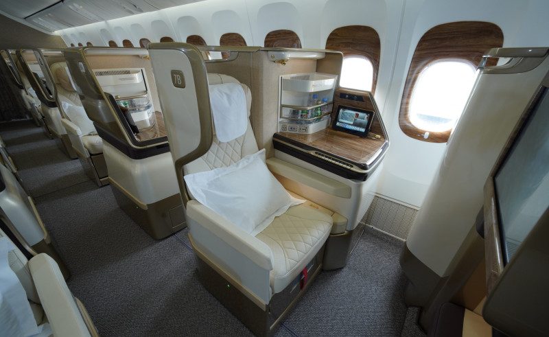 Customers flying in the new Emirates 777 Business Class can look forward to spacious seats, more privacy, with the luxury of uninterrupted sleep with a 180 degree fully reclined flat bed. With the middle seat removed, each 20.7-inch-wide soft leather seat offers aisle access for every customer, in addition to a personal mini-bar, wooden table for dining or working, multiple charging outlets for personal devices and new seat button controls.