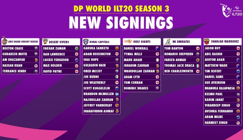 Other Season 3 signings include New Zealand quick Adam Milne, seasoned wicketkeeper-batter Tim Seifert (New Zealand), Australia left-arm spinner Ashton Agar (Australia squad member – ICC Men’s T20 World Cup 2024), Afghanistan all-rounder Karim Janat (Afghanistan squad member – ICC Men’s T20 World Cup 2024, Gulf Giants Season 2) West Indies all-rounder Keemo Paul, Sri Lanka duo of Avishka Fernando and Bhanuka Rajapaksa (Dubai Capitals Season 1, MI Emirates Season 2), Australia all-rounder Daniel Sams (rehired for Season 3), USA left-arm spinner Harmeet Singh and Malaysian all-rounder Virandeep Singh.