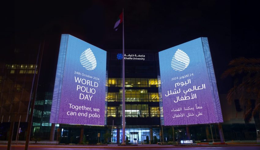 Buildings and structures across the UAE capital were lit in blue and purple to raise awareness of polio – a preventable and debilitating disease – and to reaffirm the UAE’s commitment to stamping it out globally.
