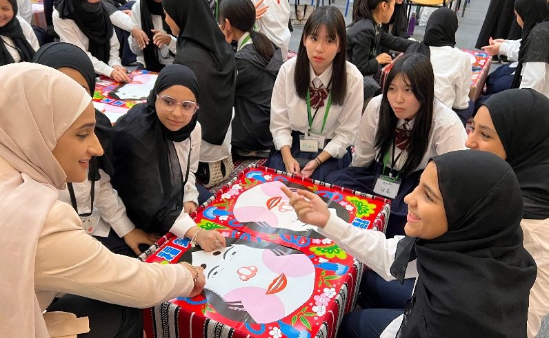 Over two days, on October 23 and 24, Japanese students from six high schools in Tokyo— Shinjuku Yamabuki, Engei, Adachi Koka, Daisan Shogyo, Sumida Koka, and Mizuho Nogei —participated in engaging activities with UAE high school students at Secondary Model School for boys, Sharjah, Khawla Bint Tahlaba Girls’ School in Sharjah, and Zainab School for Basic and Secondary Education for Girls in RAK. The program provided a unique platform for students from both nations to connect, learn about each other’s traditions, and develop a greater appreciation for cultural diversity.