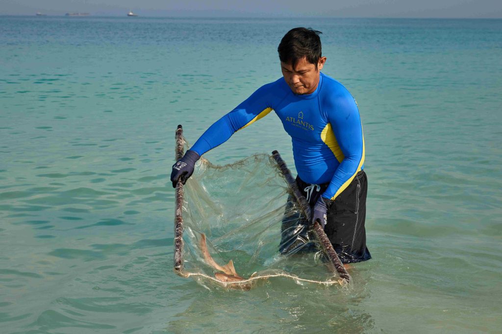 Situated on the Arabian Gulf within a rich coastal ecosystem, home to a multitude of marine species, Atlantis Dubai remains committed to supporting and advancing conservation efforts on a local, regional, and global scale. Atlantis colleagues participate in voluntary initiatives throughout the year, including beach cleanups, tree plantings, and wildlife releases.