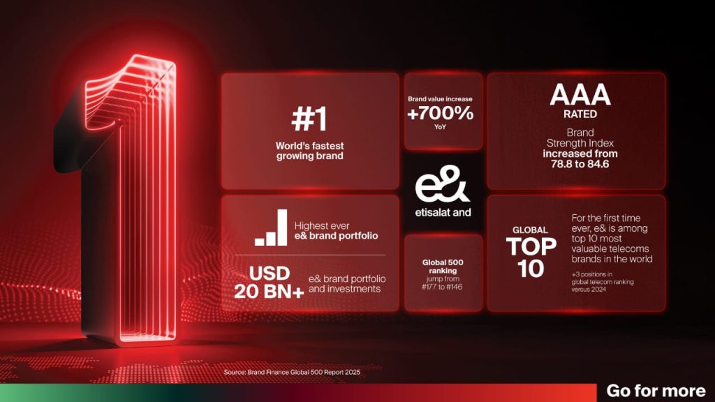 This success is the culmination of a three-year transformation journey, during which e& consolidated its historic “Etisalat” brand under a unified identity.