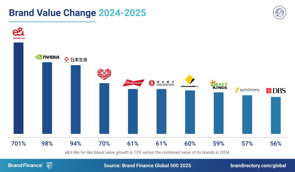 DAVOS: e&, a global technology company, has achieved exceptional brand value growth this year and is ranked by Brand Finance as the “World’s Fastest Growing Brand” in their Global 500 Brand 2025 report released earlier today during World Economic Forum at Davos. This recognition reflects a remarkable eight-fold increase in brand value versus last year, reaching an all-time high brand value of USD15.3 billion for e& as a standalone brand.