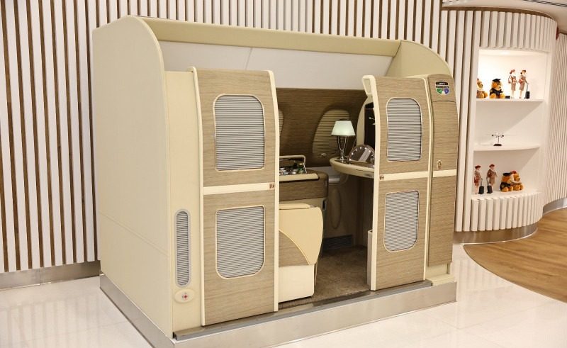 At 332m2, Emirates World Cairo brings the airline’s iconic product and services even closer to customers in the city. With its light and airy colour palette and open-plan lounge-like environment, the concept store is reminiscent of the airline’s signature inflight look and feel, further amplified by the full-size showcase of the iconic Emirates A380 Onboard Lounge experience and the First Class suite display.