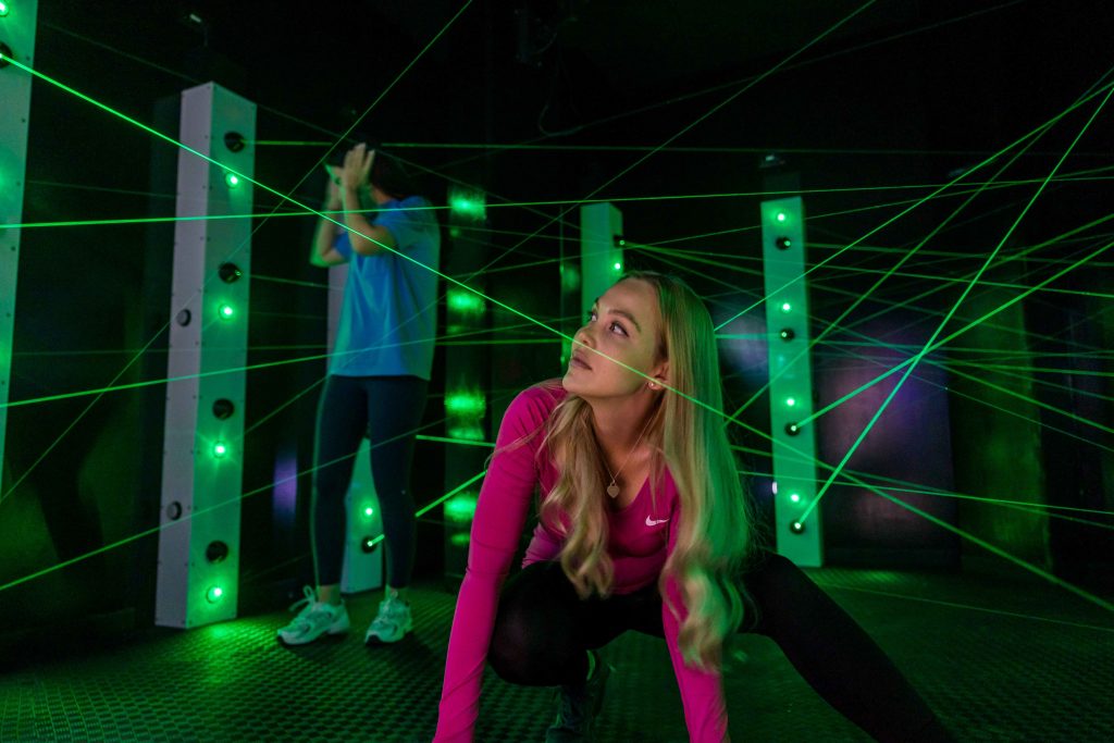 Beamz – This interactive laser maze will require your best agility and teamwork. Avoid crossing the constantly changing beams and complete the mission before your time runs out.