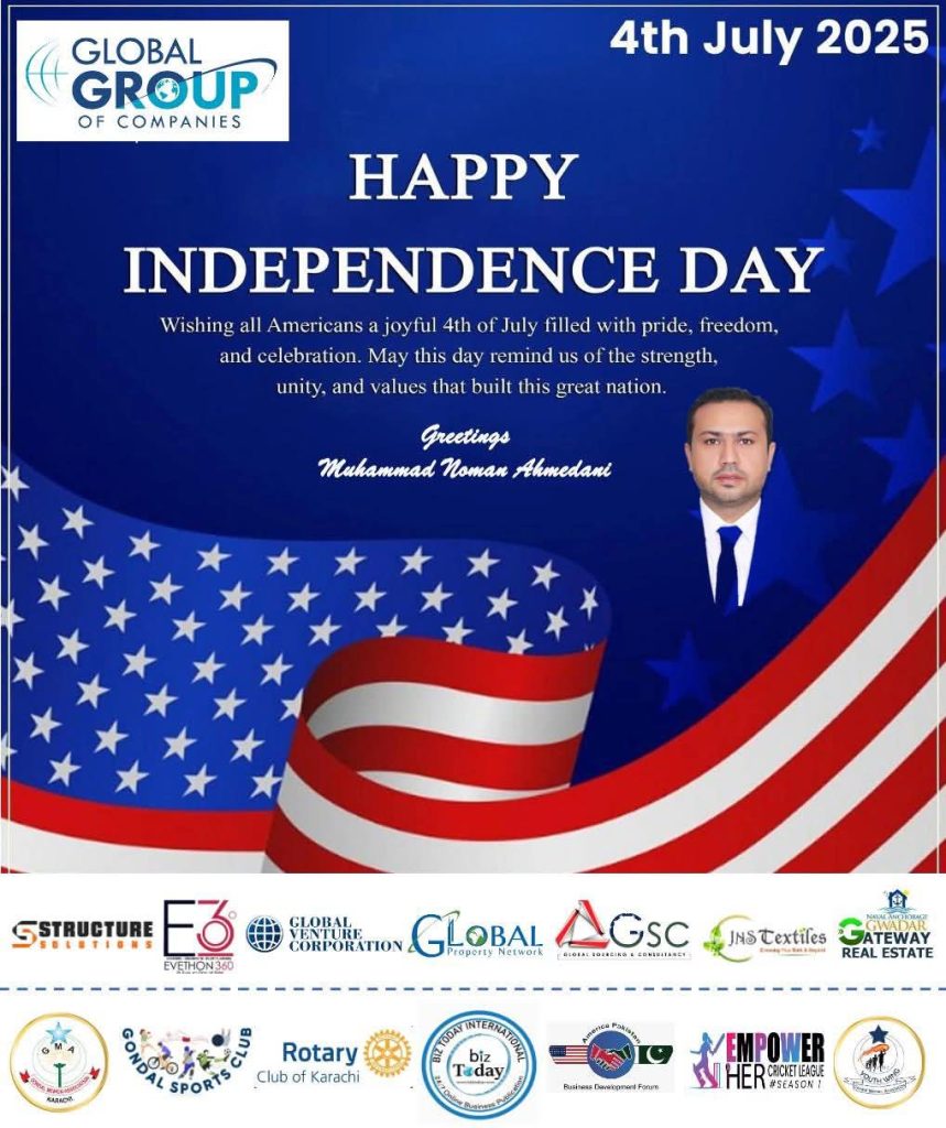 DUBAI/KARACHI: On the occasion of US Independence Day, Muhammad Noman Ahmedani, Co-Founder of the America Pakistan Business Development Forum (AMPAK-BDF), President of Real Estate and Business Development at AMPAK-BDF and Patron Biz Today International extended heartfelt congratulations to the Government and people of the United States.