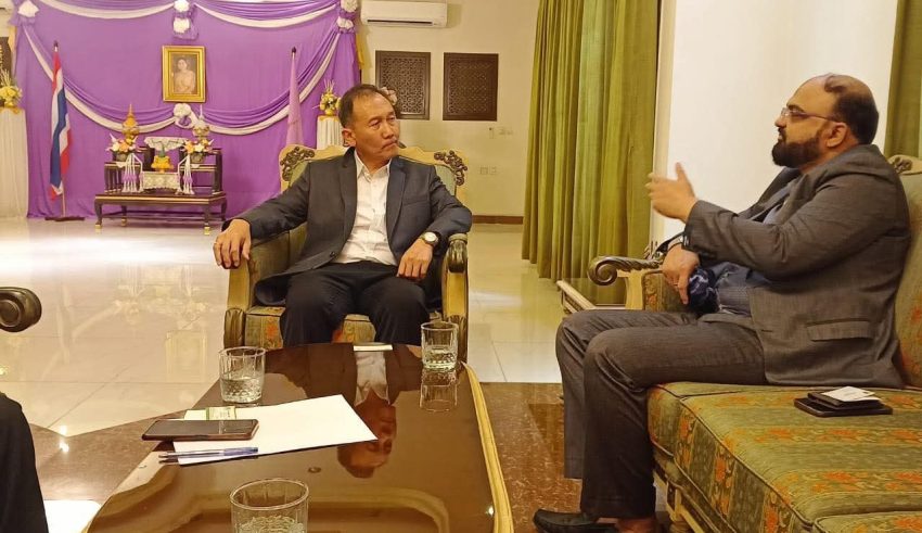 SUKKUR: On 8 July 2025, Professor Dr.Zeeshan Qaiser, Advisor to the Mayor of Sukkur and Spokesman of the Sindh Government, called on Mr. Surashete Boontinand, Consul General of Thailand at the Royal Thai Consulate General to seek collaboration in key areas of development such as healthcare, digital education, technology for fresh water treatment and medical research on genetic disorders and other tropical diseases. The Consul General welcomed his approach and sought further information on the details of his project proposals for consideration.