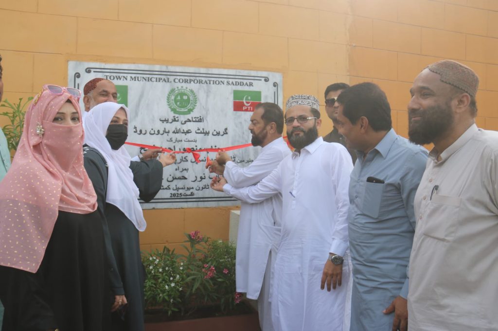 Chairman Sadar Town Mansoor Ahmed Sheikh has emphasized that restoring and developing green belts is a top priority for reducing environmental pollution, enhancing the city’s beauty, and providing citizens with a clean and healthy environment. He made these remarks while inaugurating a newly constructed green belt on Abdullah Haroon Road, adjacent to the Governor’s House.