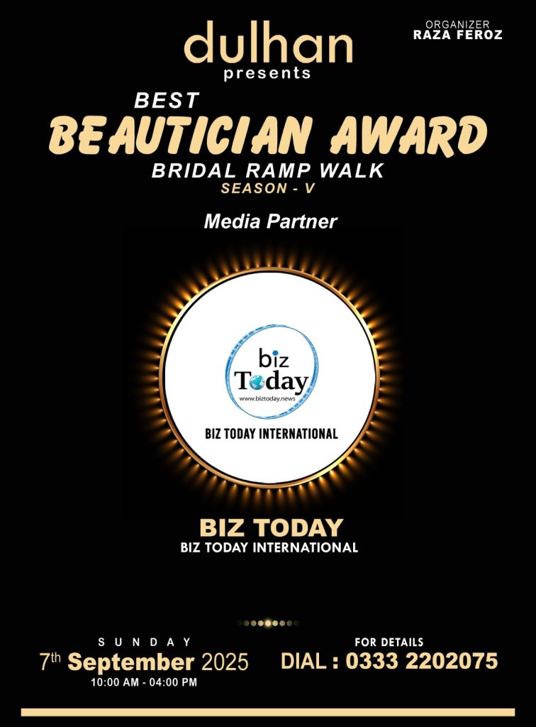 The much-awaited Dulhan’s Best Beauticians Award – Season 5 is set to take place on Sunday, 7th September 2025, at Casa De Farooq Banquet, North Nazimabad, Karachi, from 11:00 AM to 4:00 PM.