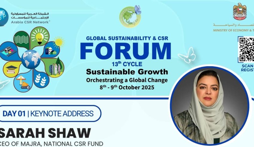 DUBAI: The Arabia CSR Network is honoured to announce Sarah Shaw, CEO of Majra – National CSR Fund, as a Keynote Speaker for Day One of the 13th Cycle of the Global Sustainability & CSR Forum, scheduled for October 8–9, 2025 at Dubai Chambers.