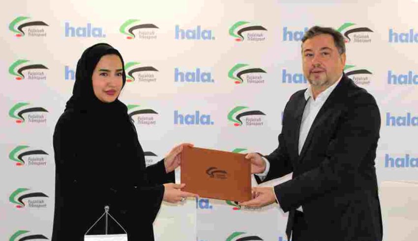 The official signing ceremony was held in Fujairah and attended by Khaled Nuseibeh, Chief Executive Officer of Hala, and Her Excellency Engineer Asayel Albalghoni, General Manager of Fujairah Transport Corporation.